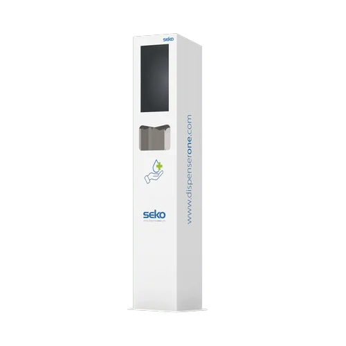 Seko’s DispenserONE Flexi, a versatile and innovative dispenser featuring a 10-liter capacity and a 43.2cm screen. Crafted for flexibility and convenience, the DispenserONE Flexi offers a large capacity for dispensing various liquids, such as hand sanitisers, soaps, or disinfectants. The 43.2 screen provides an intuitive interface for users, allowing for easy operation and interaction. Ideal for use in public spaces, healthcare facilities, hospitality venues, and more, the DispenserONE Flexi enhances hygiene practices and communication efforts.